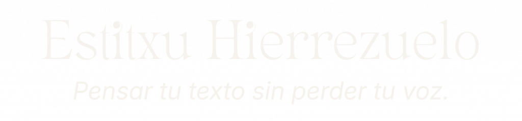 Soy Estitxu Hierrezuelo, editora narrativa y acompañamiento editorial, especializada en corrección de estilo y análisis narrativo.
